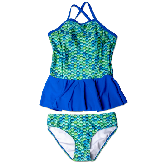 Women's Arctic Blue Peplum Tankini Top & Bottom Set