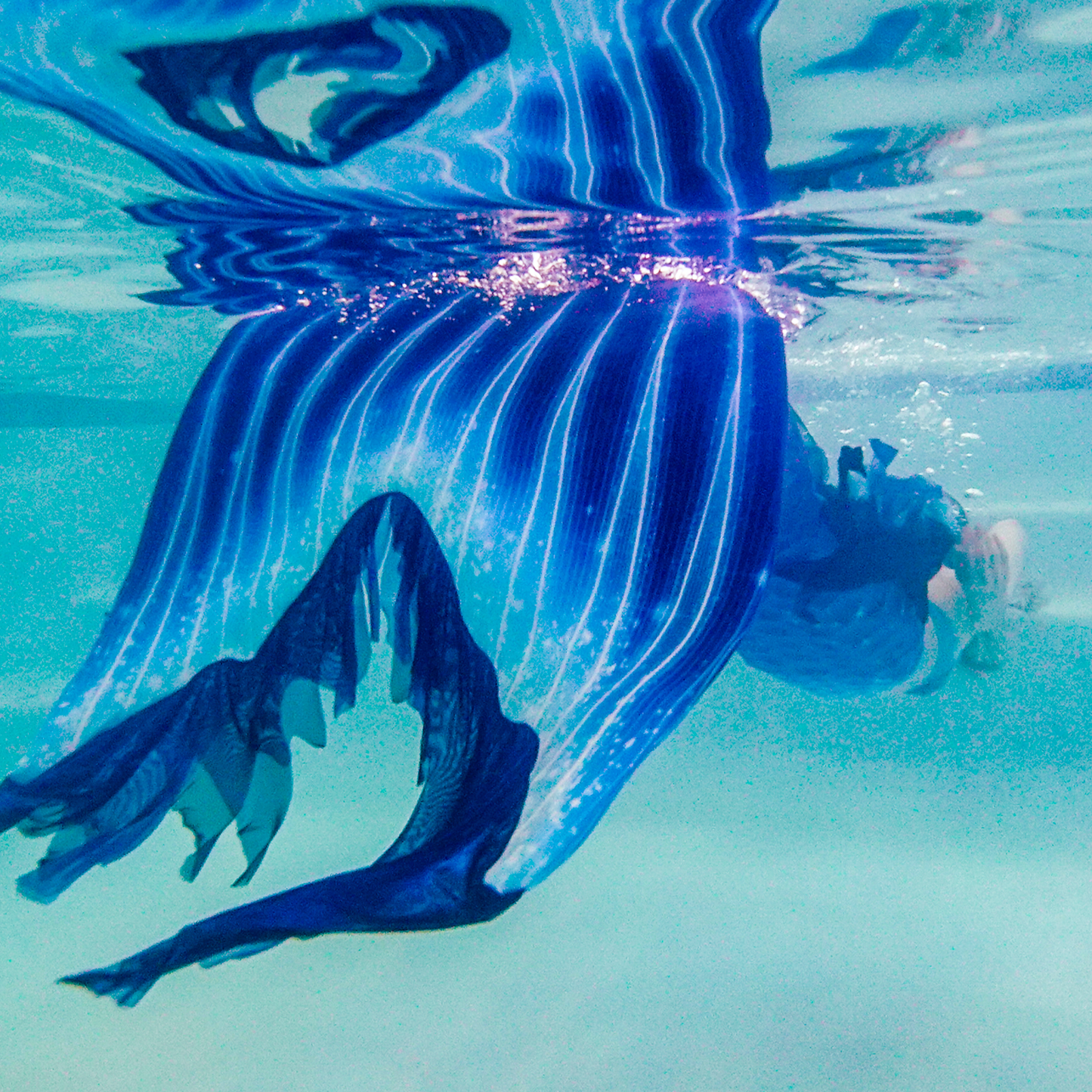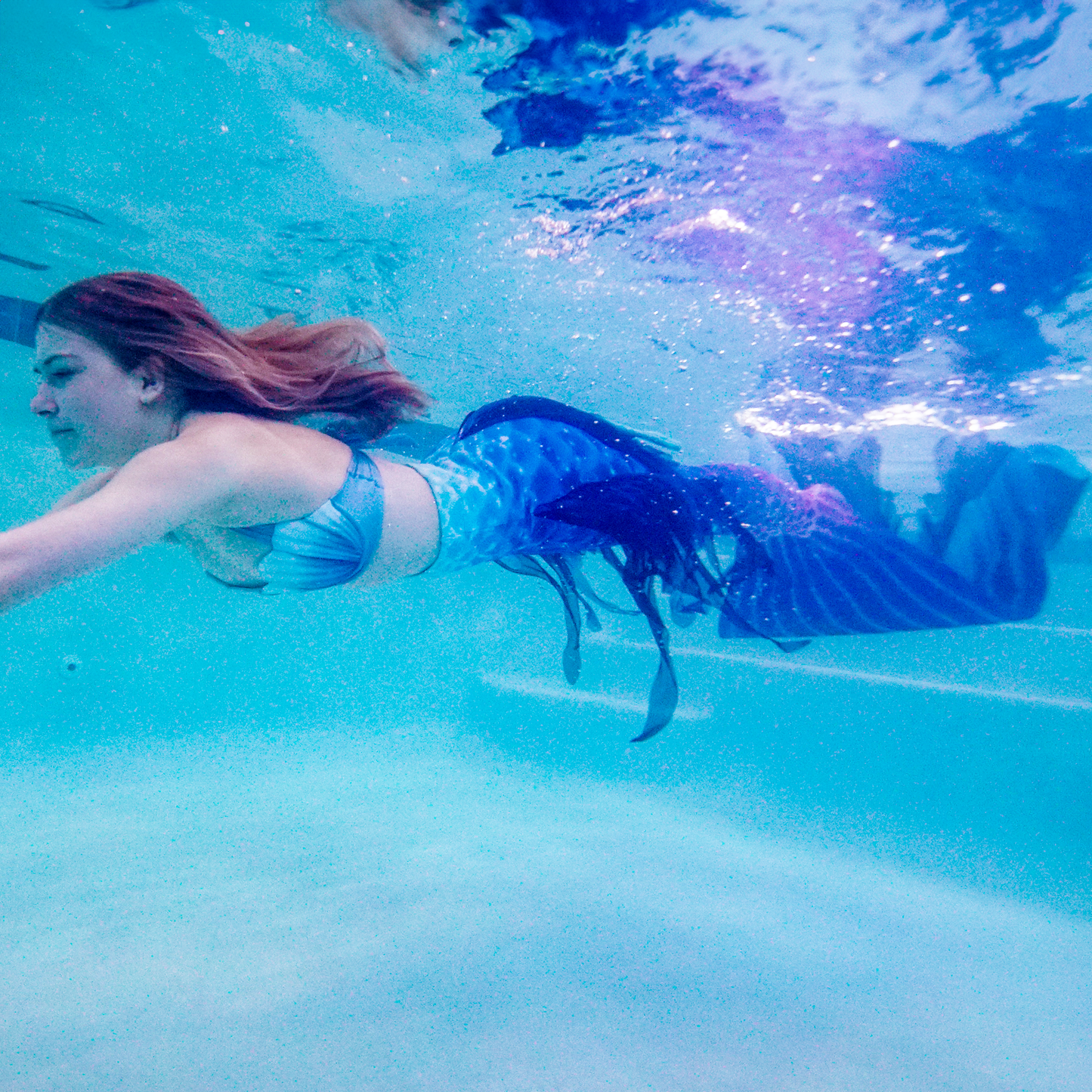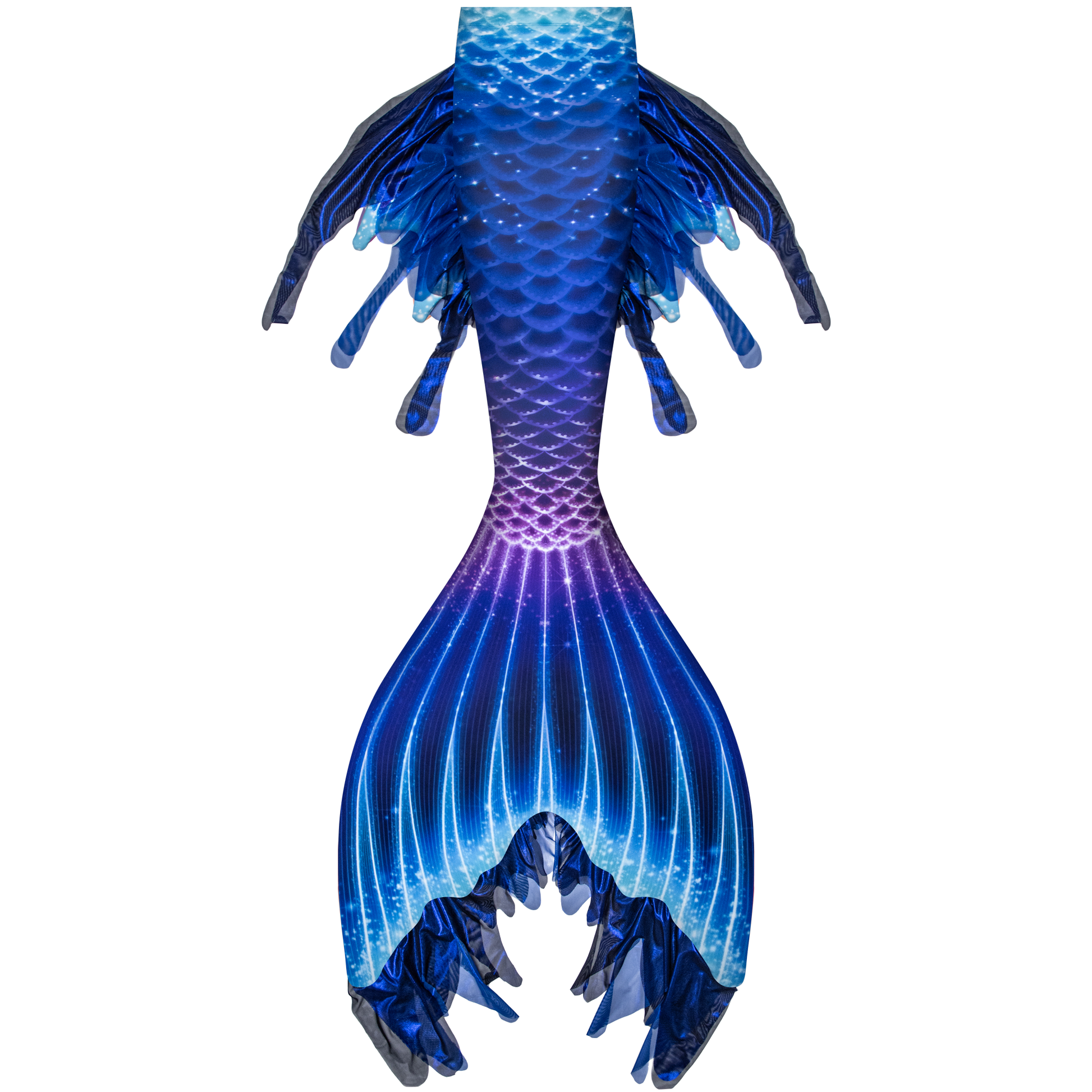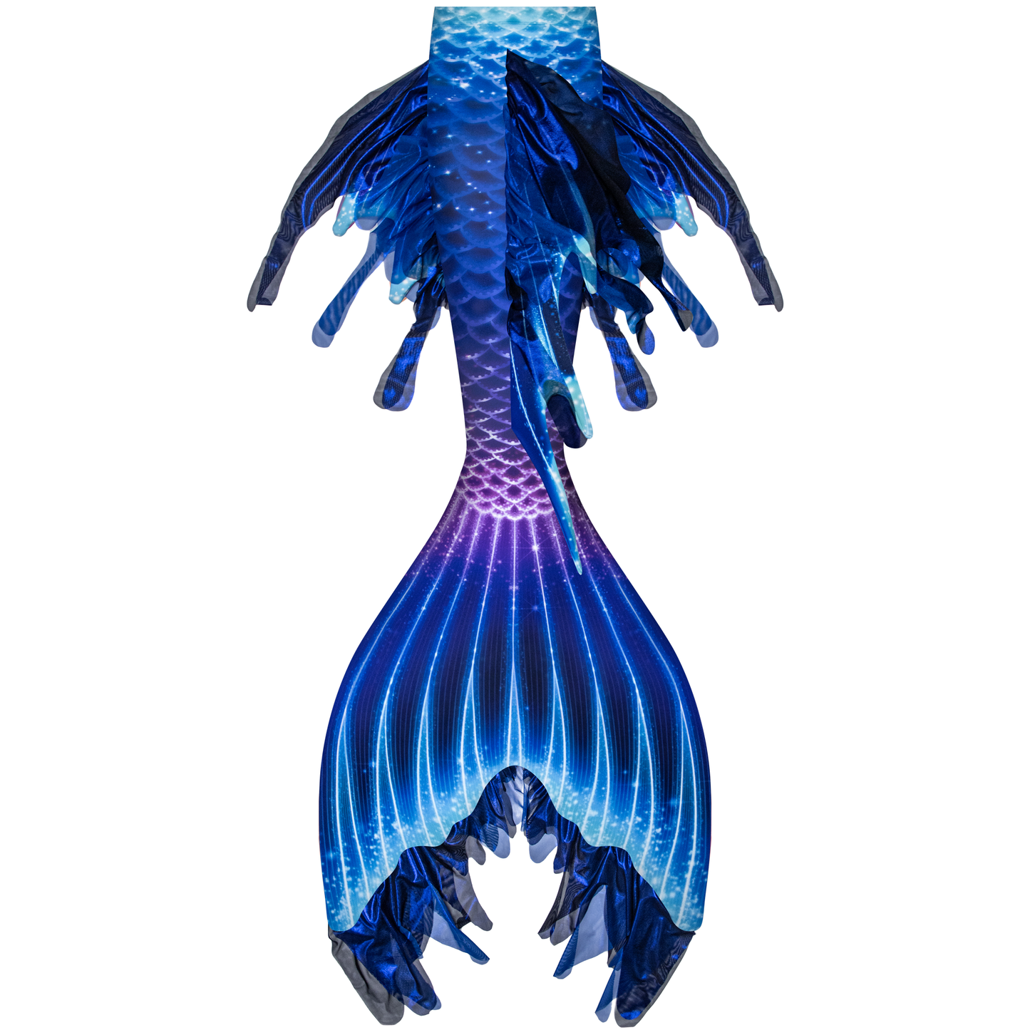 Dive into the mysterious beauty of the ocean’s depths with the Deep Sea Calypso Elite Mermaid Tail, inspired by bioluminescent sea life and the magic of the unknown. Deep blues, aqua, and magenta tones swirl together with bright accents to capture the shimmer and allure of the deep. Flowing layered mesh fins add graceful movement and dimension, making this tail as bold as it is beautiful—designed for mermaids who thrive in the extraordinary.