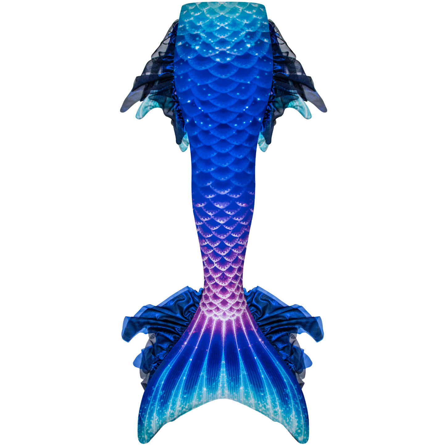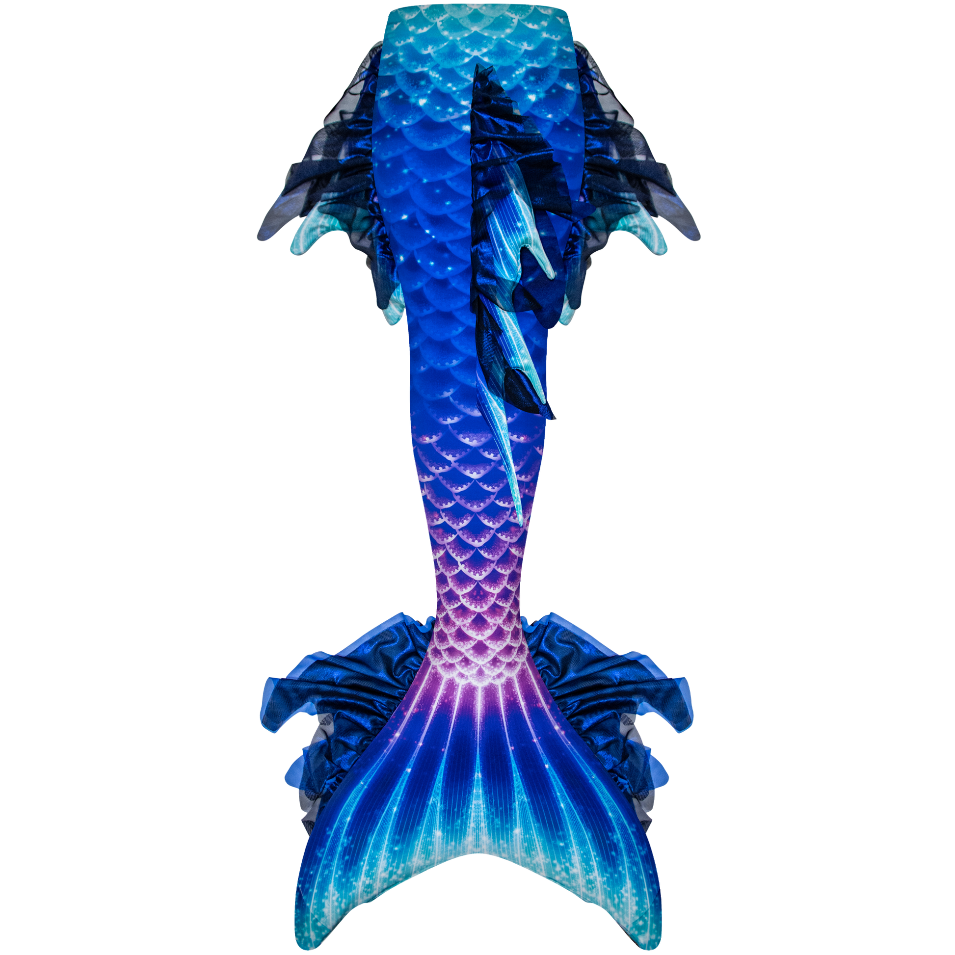 Dive into the mysterious beauty of the ocean’s depths with the Deep Sea Atlantis Mermaid Tail, inspired by bioluminescent creatures and the magic of uncharted waters. With deep blue, aqua, and magenta tones, a bright spine-like fluke design, and flowy mesh side and dorsal fins, this tail is made for mermaids who thrive in the extraordinary.