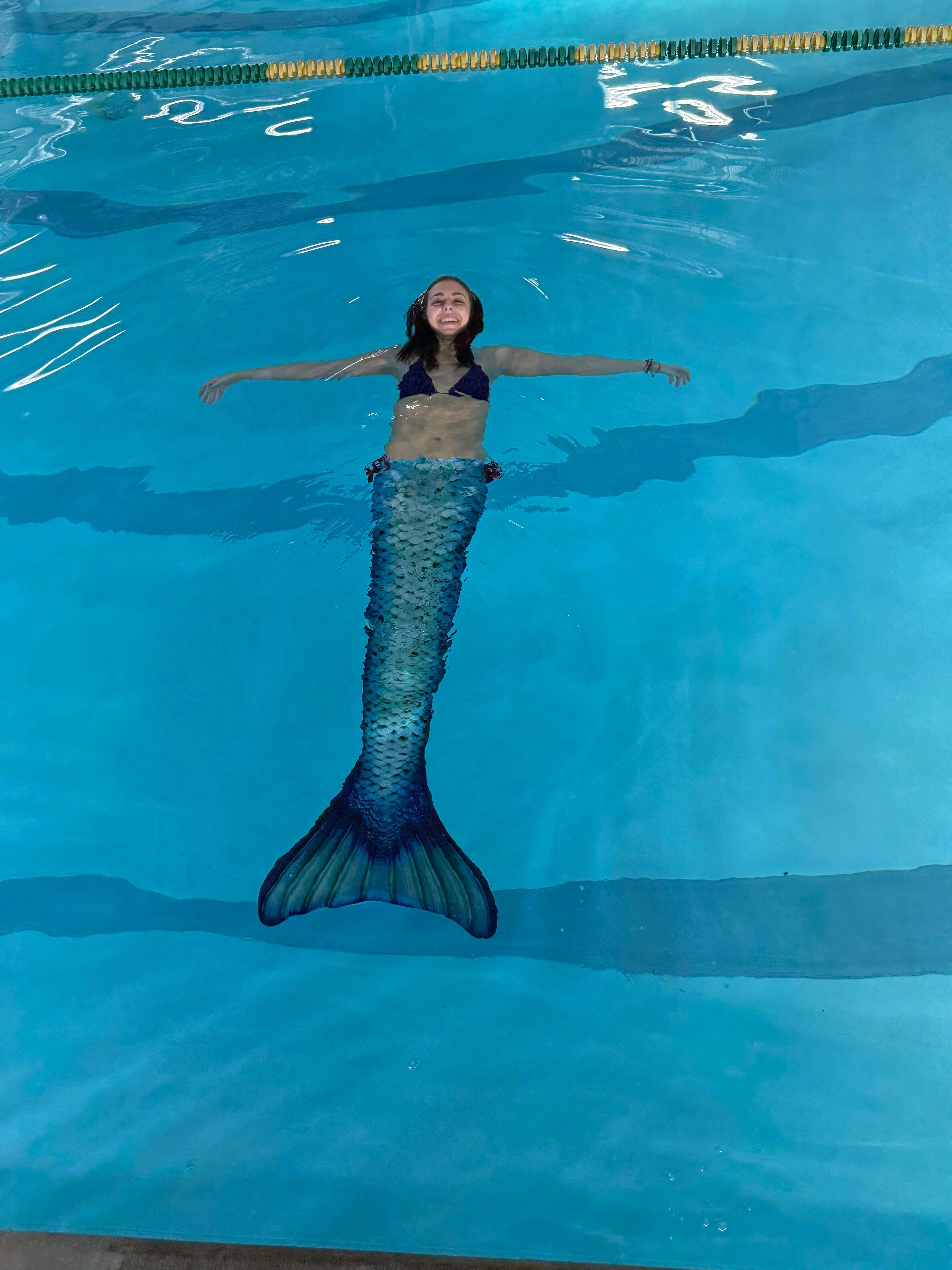 my first tail since i was 12❤️ i’ll always love finfun, its a little bit big but looks soooo good in the water💙🩵