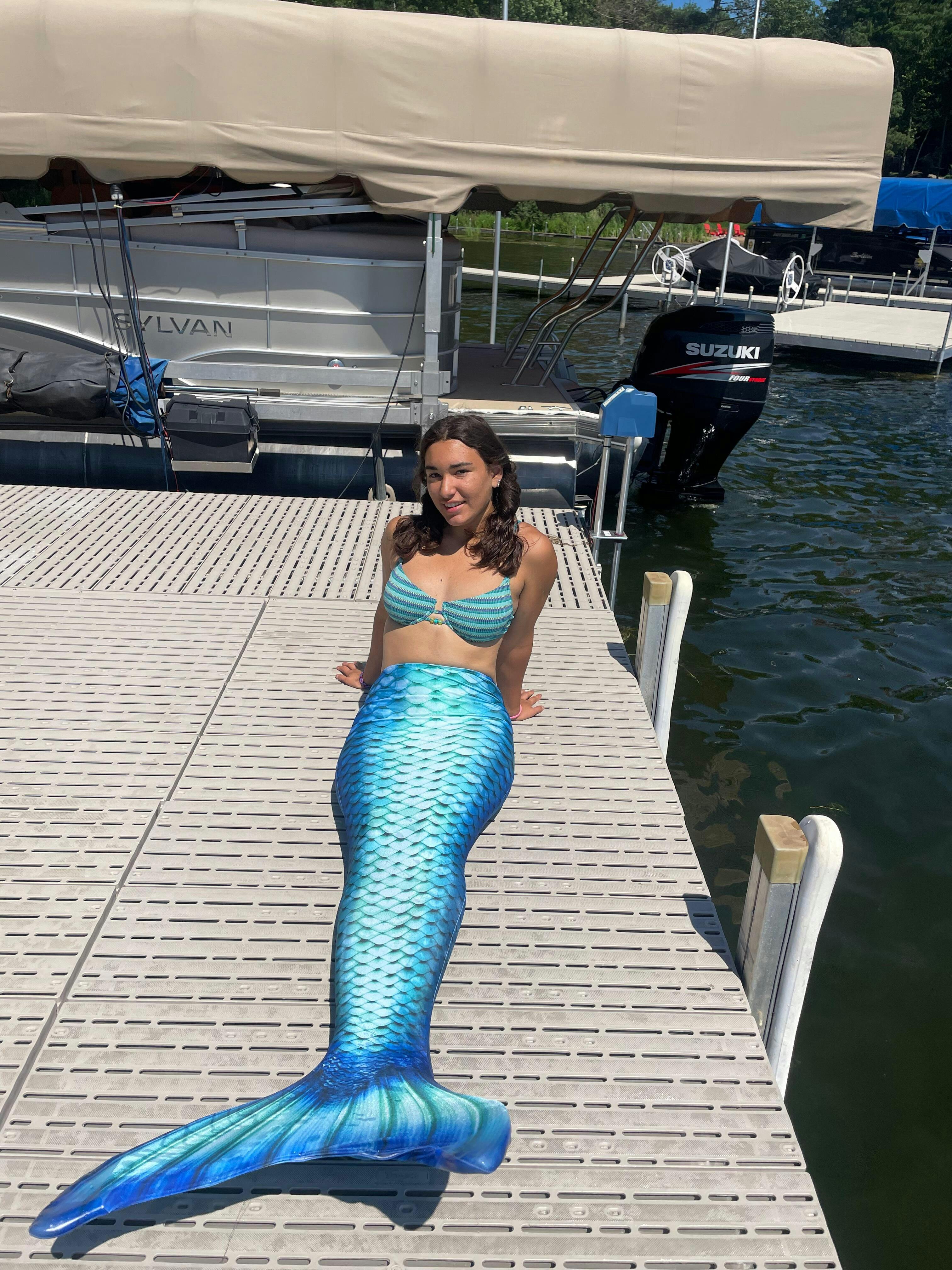 Nacida de aguas cristalinas en un lugar místico, emergerás como la impresionante sirena que siempre has soñado con la cola de sirena color aguamarina.