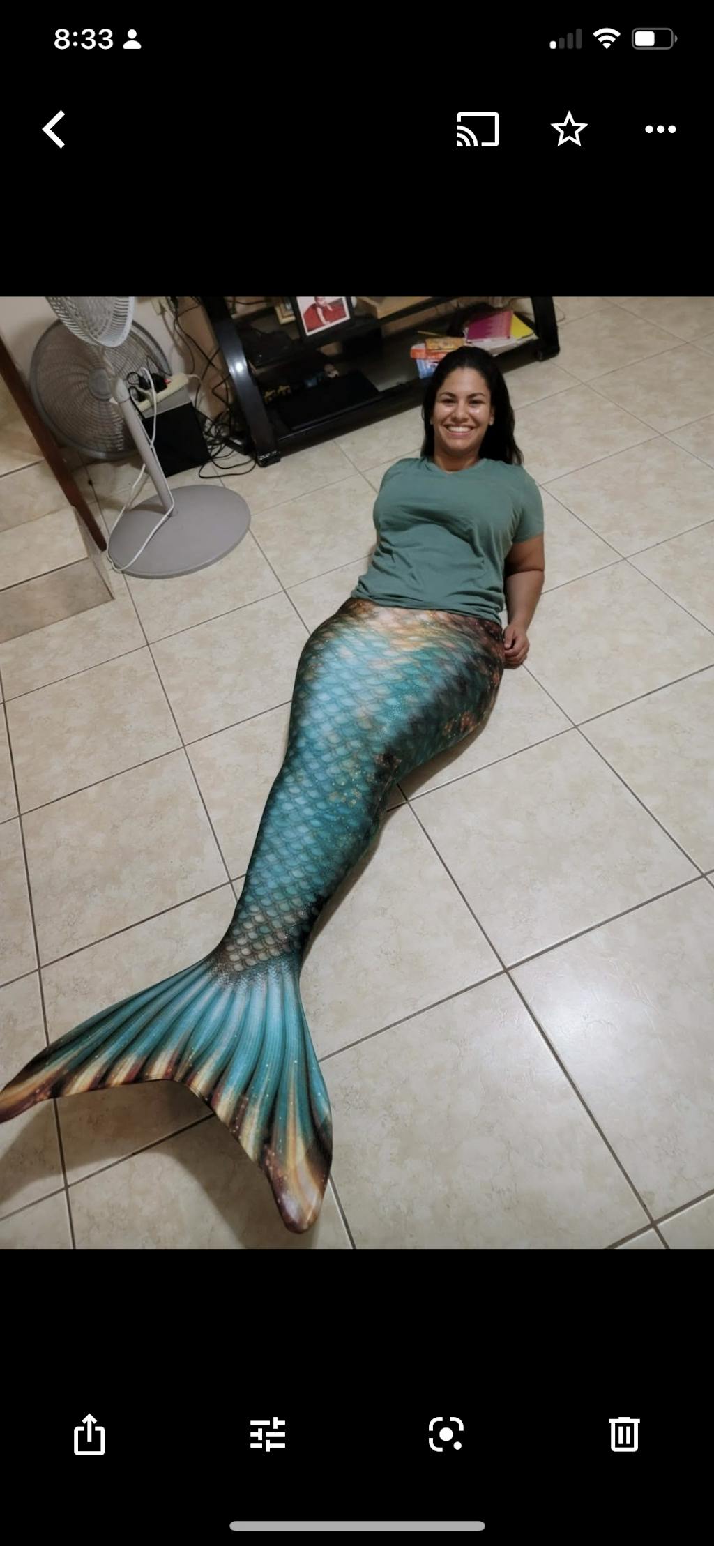 Got it for her for Christmas she’s super excited. 💗 and they gave her a free towel. I’m jelly. I never got a free towel when I got my tail 🤣 In the picture it’s me because my daughter is gonna open hers in Christmas but if you are thinking about it. Just do it is amazing!