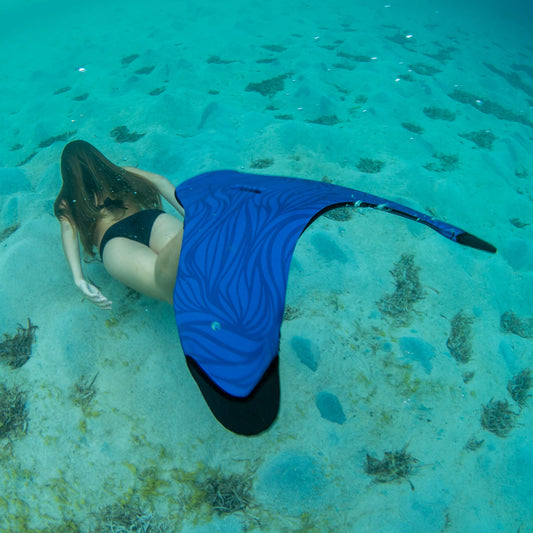 Designed for stronger, more controlled movement, this patented monofin is the upgraded version of our Blue Trim Monofin. It features reinforced tips, a stiffer insert, and a center seam for a secure fit while maximizing power and speed in the water. Compatible with the Quick-Release Method, it allows for easy removal when needed. Perfect for mermaids looking to level up their skills.