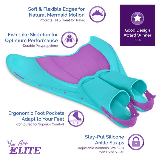 Our most popular and budget-friendly patented monofin is perfect for young mermaids and adults looking for a smooth, natural swimming experience. It offers effortless propulsion and features comfortable foot pockets designed for easy use with the Quick-Release Method, ensuring added security and confidence.