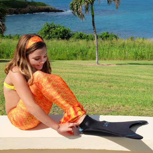 Take your mermaid swimming to the next level with Fin Fun’s mermaid monofins, designed for smooth, effortless movement in the water! Whether you're just starting your mermaid journey or looking to enhance your speed and control, our monofins offer the perfect balance of comfort, durability, and performance. Made with dive-grade neoprene, comfortable foot pockets, and virtually unbreakable inserts, these monofins help swimmers glide through the water with more speed and less effort while prioritizing safety and ease of use.
